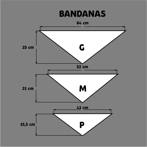 • Tamanhos Bandana: